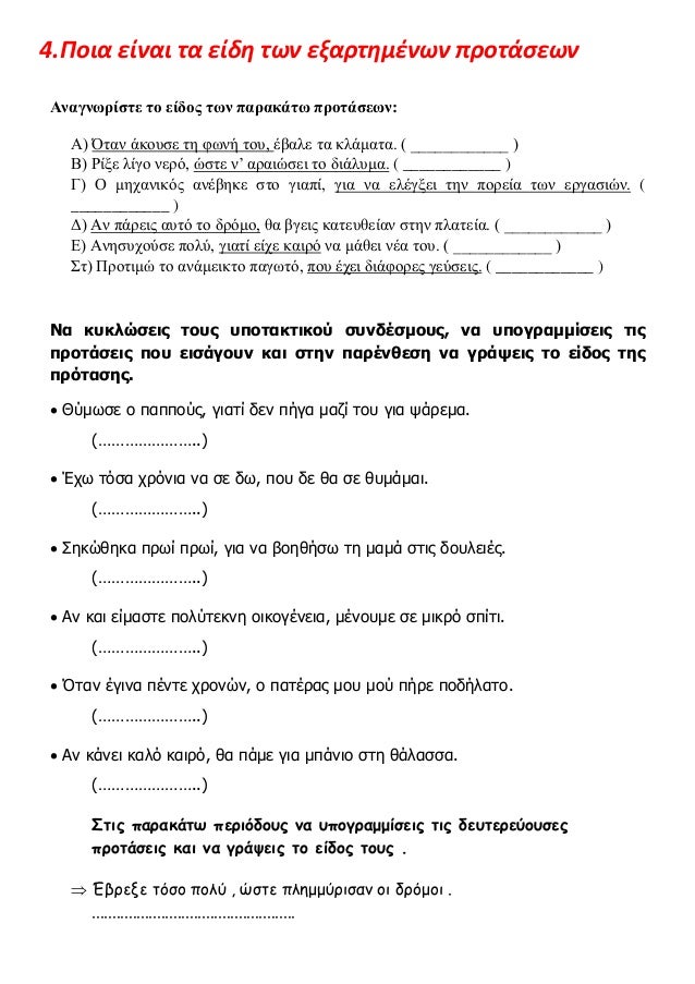 Στις παρακάτω προτάσεις υπογραμμίζω την ανεξάρτητη πρόταση, κυκλώνω τους συνδέσμους και γράφω το είδος της εξαρτημένης πρότασης: