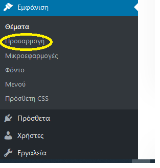 Για να επιλέξουμε Θέμα μεταβείτε από το αριστερό τμήμα της διαχείρισης στην καρτέλα